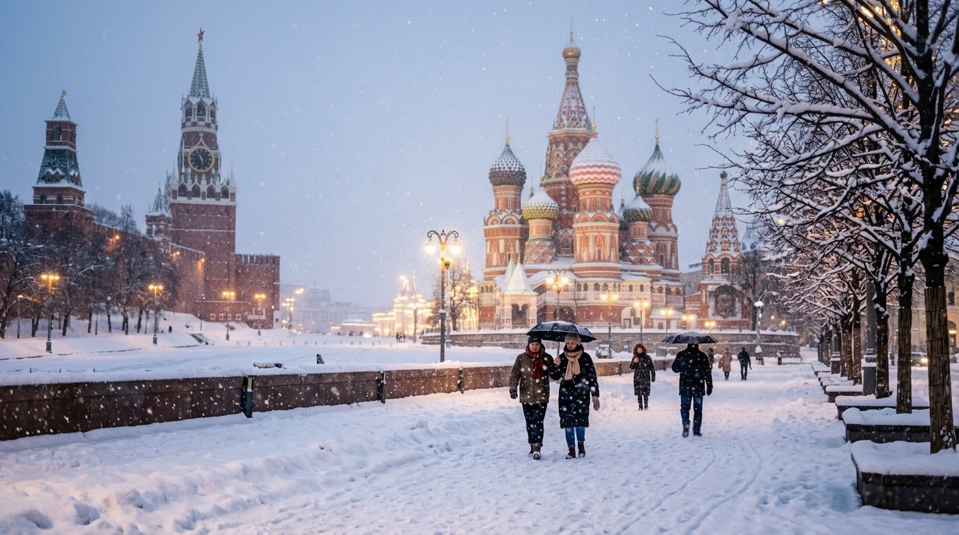 Moscow weather in winter is typically below -10°C, with occasional dips to -20°C, making insulated clothing essential.
