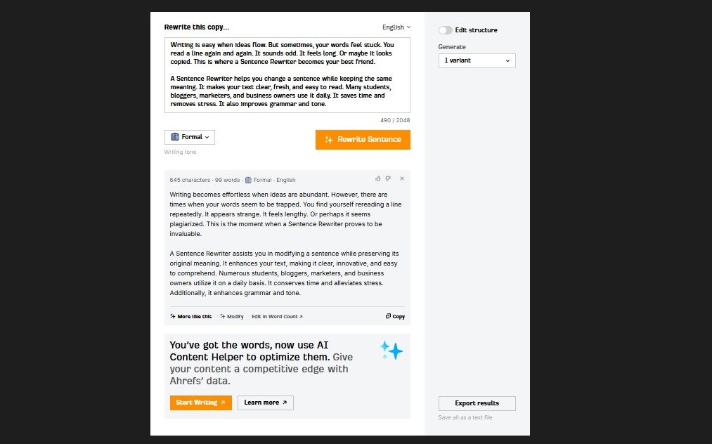 Not all tools are equal. A good Sentence Rewriter should offer: